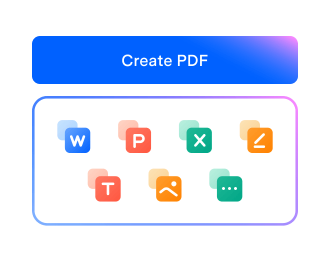 Turn images, Word, Excel, HTML, scans, and more into PDFs instantly.